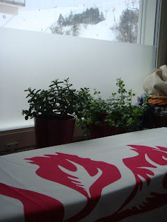 I have a calm place at home that reminds me of meditation and deep breathing, which all was long time ago. But today this makes me feel good! Great grandmother did the lime colourd cloth.